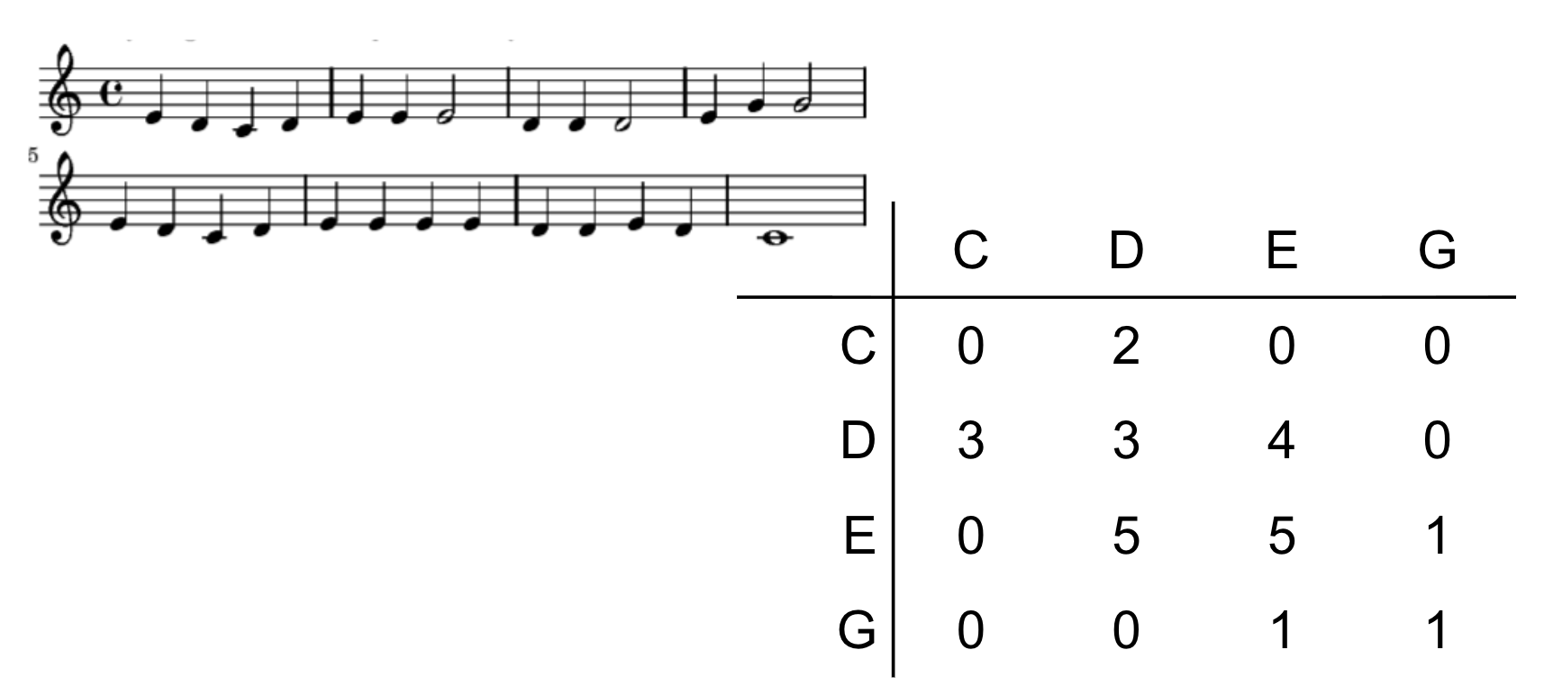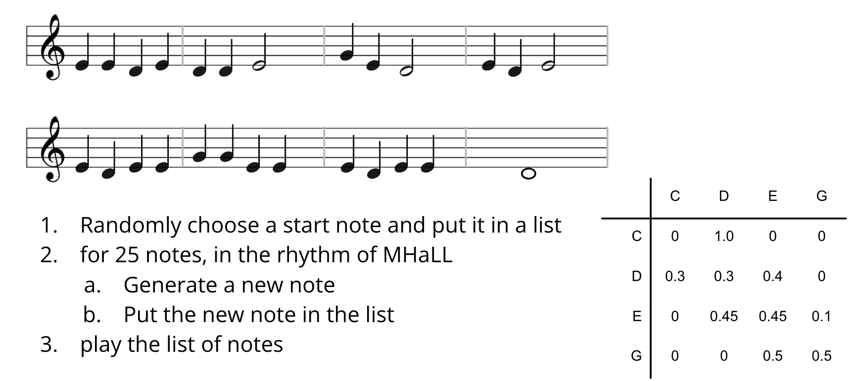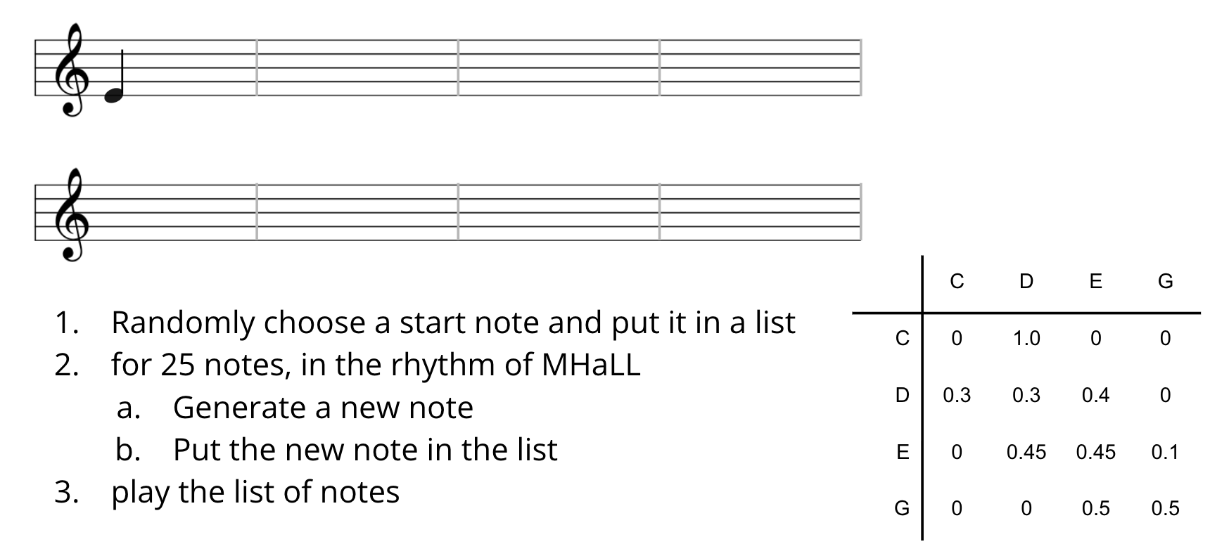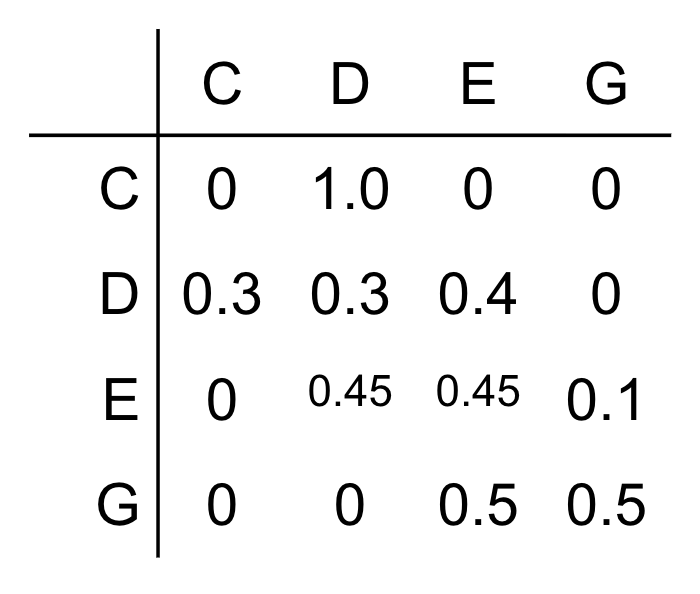 We modelled it using a transition table, or a finite state machine, and we used it as the basis for an algorithm to generate music.