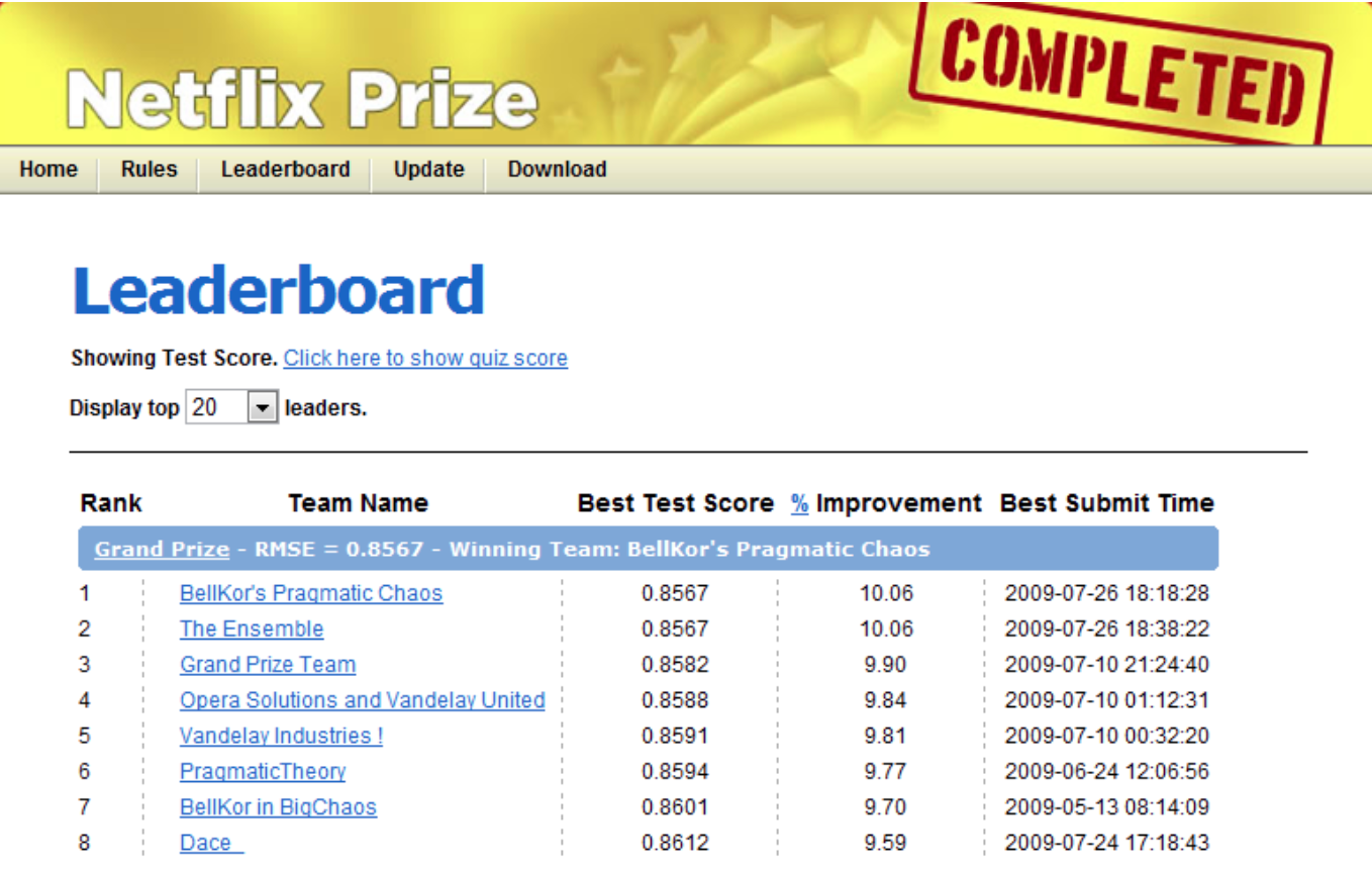 Reduction in code maintainability (e.g. Netflix prize).
