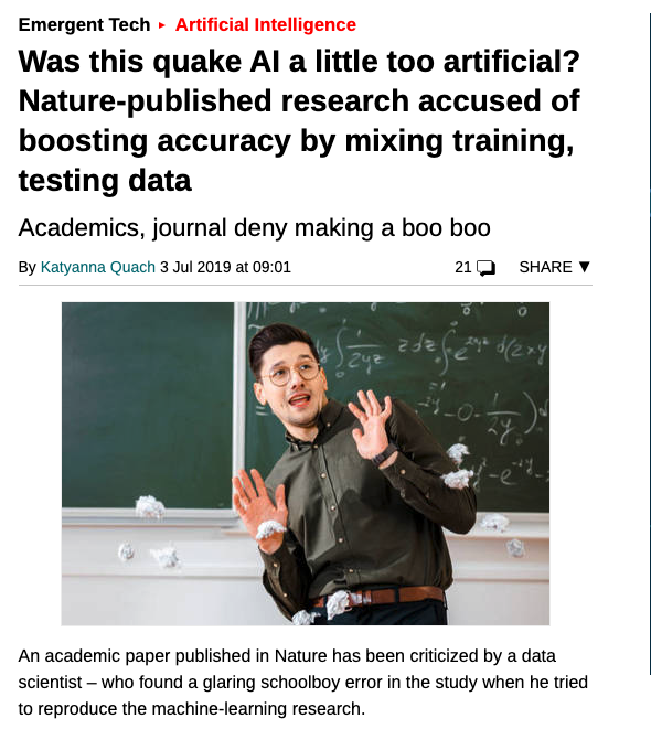 ... He attempted to reproduce the research, and found a major flaw: there was some overlap in the data used to both train and test the model.