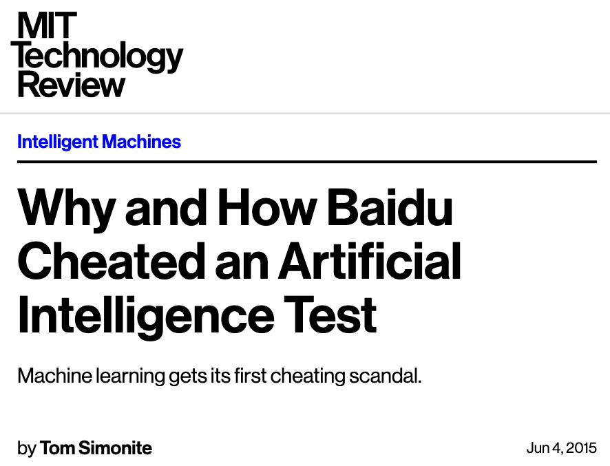 ... The Challenge rules state that you must only test your code twice a week, because there’s an element of chance to the results. Baidu has admitted that it used multiple email accounts to test its code roughly 200 times in just under six months – over four times what the rules allow.