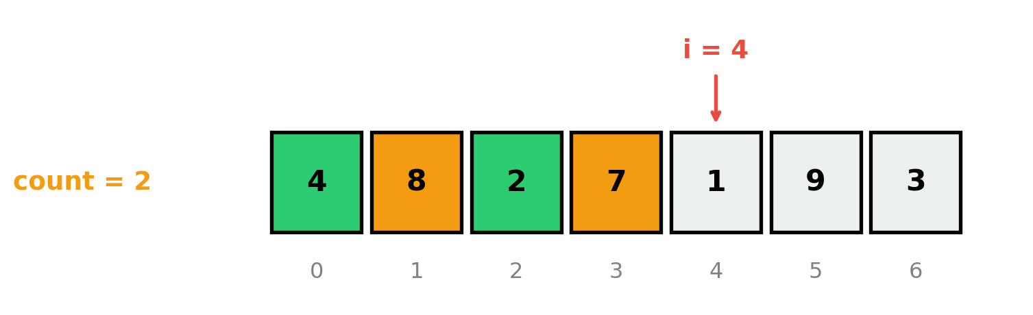 arr[0:4] = [4, 8, 2, 7]: 8 and 7 → count = 2i = 4The Invariant: At iteration \(i\), count equals the number of elements > 5 in arr[0:i].